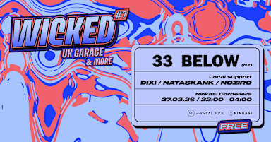 Physical Tool et Ninkasi Cordeliers présentent : 𝙒𝙄𝘾𝙆𝙀𝘿 💕 Notre soirée qui met à l’honneur le UK Garage et la Bass Music en plein centre de Lyon 𝑖𝑠 𝑏𝑎𝑐𝑘 ! On vous donne rendez-vous le vendredi 27 mars au Ninkasi Cordeliers avec : 33 Below, prodige néo-zélandais du UK Garage, Noziro, Dixi et Nataskank. Le UK Garage continue sa percée sur la scène des musiques électroniques. Avec des collaborations avec Sammy Virji, des premières parties pour Fred Again et RL Grime, et des productions ultra solaires, 33 Below fait partie de ces artistes qui assurent la relève. Lyon vous êtes prêts à groover ? 𝐶𝑒𝑟𝑖𝑠𝑒 𝑜𝑛 𝑡ℎ𝑒 𝑐𝑎𝑘𝑒, l’entrée est gratuite all night long ! —————— 𝗟𝗜𝗡𝗘 𝗨𝗣 🩵 —————— 🎧 @33_below (NZ) 🎧 @noziro_music (FR, Lyon) 🎧 @dixi (Physical Tool) 🎧 @nataskank_ (Physical Tool) ——————𝗜𝗡𝗙𝗢𝗦—————— 💕 ENTRÉE GRATUITE 🎡 UK GARAGE & BASS MUSIC 🗓️ VENDREDI 27 MARS 2026 // 22H00 - 04H00 📌 NINKASI CORDELIERS - 1 Rue du Président Carnot, 69 001 BEERS, COCKTAILS & FOOD ! 🍺🍹🍔 Graphisme : @cloeuf 📢 Les actions ou étalages des comportements suivants ne sont pas tolérés lors de nos évènements (et dans la vie aussi d’ailleurs) : racisme, sexisme, transphobie, homophobie, misogynie, discriminations, intolérances, ainsi que l’irrespect des règles de consentement. Le manquement à cette règle implique une exclusion immédiate de la soirée. Une équipe est présente pour veiller au bon déroulement de l’évènement.