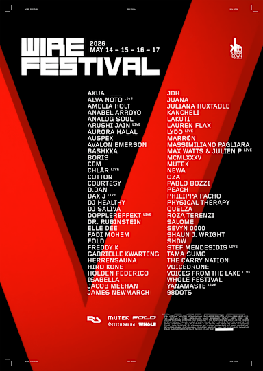 WIRE FESTIVAL returns to Knockdown Center for its 5 year anniversary, on May 14-15-16-17, 2026. The festival’s core principles have remained intact since day one: uncompromising curation that highlights the most exciting voices in the US and international techno/house underground, with an eye towards uniting the city’s exceptional local talent with their peers and forbears from across the globe. This mission is augmented by WIRE’s community-building initiatives, including panel discussions in collaboration with Resident Advisor, industry meetups and the festival’s infamous stage takeovers by specially-invited collectives.