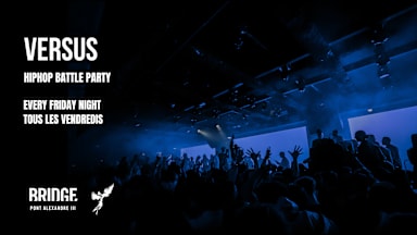 ENGLISH VERSION BELOW // Bienvenue à la soirée VERSUS au Bridge Club Battle 100% hiphop / généraliste comme le samedi ! Sous le célèbre Pont Alexandre III, prend place la plus gros battle de hip-hop de Paris. 📆 tous les vendredis 🎶 musique hip-hop / généraliste 🕦 0:00 -6:00 🎉 shows, costumes, surprises, battle entre DJS & MC 📍 BRIDGE CLUB 3 Port des Champs-Élysées 75008 Paris La direction se réserve le droit d’admission. En cas de refus, veuillez réclamer votre remboursement de prévente le soir même auprès du responsable sur place à la porte d’entrée. Toute demande ultérieure ne sera pas traitée. En tant que club et débitant de boissons alcoolisées licence IV, nous n’acceptons que les personnes majeures. Infos et réservations table supplémentaires sur notre page Instagram : versus_paris ———————————————————— Welcome to VERSUS party at the Bridge Club Versus is reinventing itself as a 100% hip-hop night, just like on Saturdays! Under the famous Pont Alexandre III, the biggest hip-hop battle in Paris takes place. 📆 every Friday 🎶 hip hop music 🕦 00:00 -6:00 🎉 shows, costumes, surprises & battles between DJS & MCs 📍BRIDGE CLUB 3 Port des Champs-Élysées 75008 Paris The management reserves the right of admission. In case of refusal, please claim your pre-sale refund the same evening from the person in charge at the entrance. Any subsequent requests will not be processed. We only accept people over 18. You can DM us on instagram for more information and specific table reservations : versus_paris