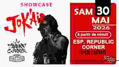 Jok’Air s’emparera de la scène de l'ESPACE REPUBLIC CORNER de POITIERS le 30.05.2026 ! Il viendra pour un SHOWCASE Exclusif en after de la soirée "URBAN CORNER" et son dj set Alors dès à présent, n’attendez plus pour prendre vos places ! ---- Horaire : 22h - 4h30 Warm up & close by Dark-M Début du Showcase "Jok'Air" à partir de minuit. Infos pratiques Urban Corner👇 Lieu : ESPACE REPUBLIC CORNER - Salle de concert à Poitiers 🥂 Restauration et bar sur place 🅿 Parking gratuit 🚌 Arrêt Republic I 🚗 Envie de co-voiturer ? C’est ici : https://togetzer.com/erc 🔞 Interdit aux mineurs 🍹 *hors pinte de bière, cocktail, spiritueux supérieur, bouteille ---- Inclassable et empreint de liberté, voilà les termes qui définissent Jok’Air et sa longue carrière de rappeur. Surnommé le rappeur français le plus américain, Jok’Air de son petit nom Big Daddy Jok’ sait entretenir l’engouement du public avec une véracité naturelle, des textes sincères qui résonnent comme un témoignage authentique de sa vie.